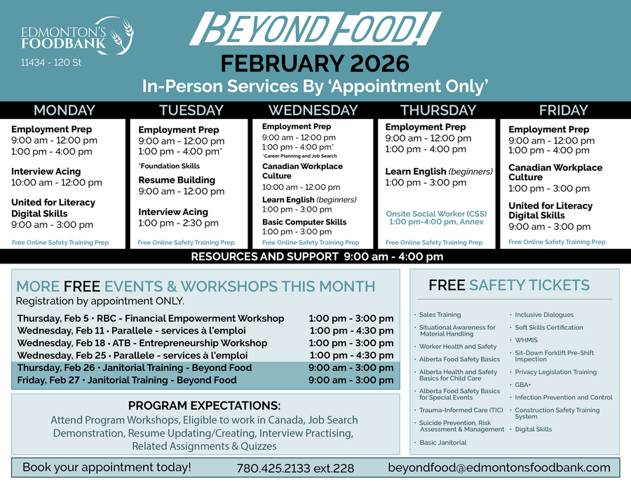 Beyond Food is a proactive endeavor, designed to uplift individuals from poverty by providing access to essential services. These services are FREE and open to all, regardless of their association with Edmonton's Food Bank.