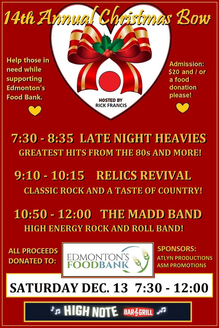 Come to High Note Bar and Grill on Saturday, December 13 between 7:30 pm to 12:00 am and listen to rocking bands and help feed people in need in our city.