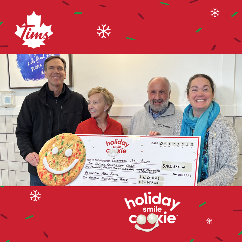 In the past two years the Tim Hortons Holiday Smile Cookie has raised $187,527 for Edmonton's Food Bank! Thank YOU!!!!
